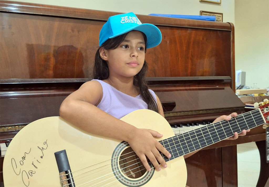 CulturaRegionalCantora mirim Lavínia Bitarães ganha violão autografado de dupla sertaneja 18 de março de 2025